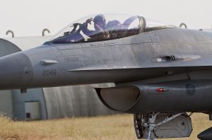 • Italian air force Col. Vincenzo Tozzi, Aviano base commander, left, and U.S. Air Force Lt. Col. Daniel Lindsey, commander of the 510th Fighter Squadron, taxi to the runway in an F-16 Fighting Falcon at Aviano Air Base, Italy, Sept. 17, 2019. Col. Tozzi was given a flight in an F-16 as a show of gratitude from the 31st Fighter Wing for his time as base commander. (U.S. Air Force photo by Staff Sgt. Kelsey Tucker)